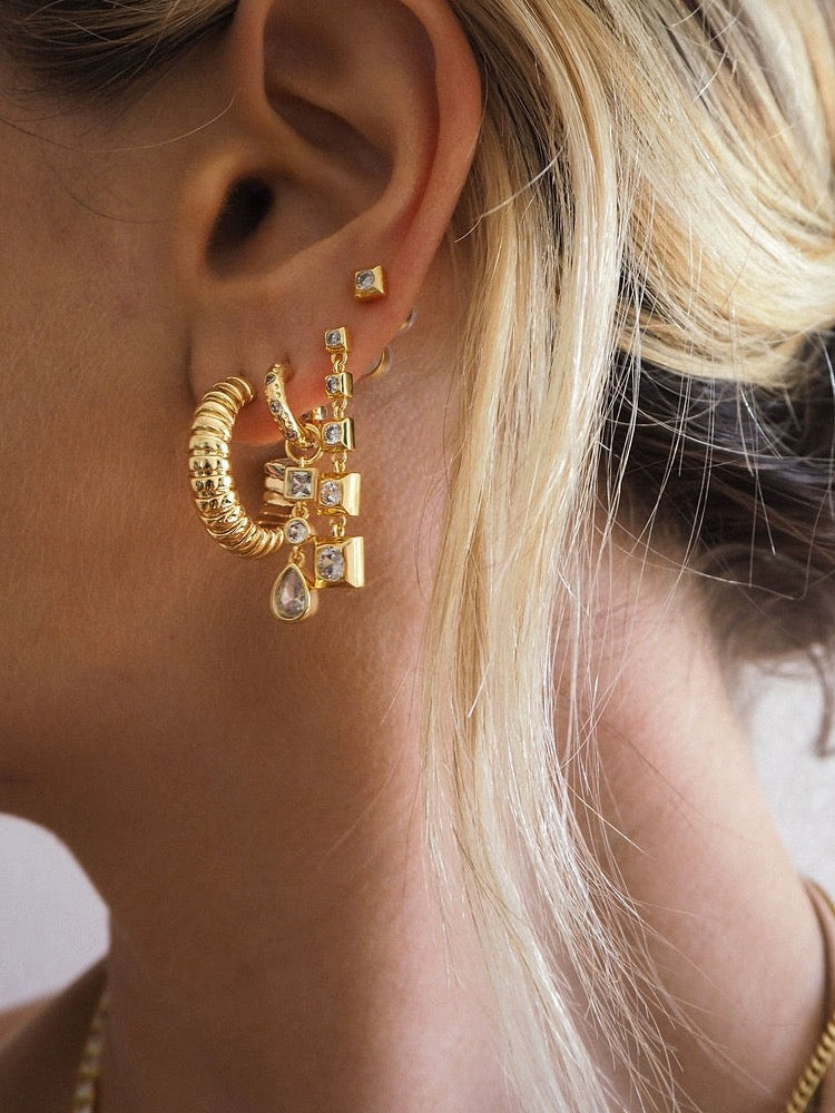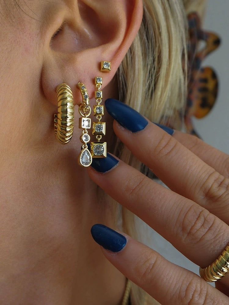 Geometric Gold Earrings Set with Cascading Diamonds | Tsukuba Jewelry