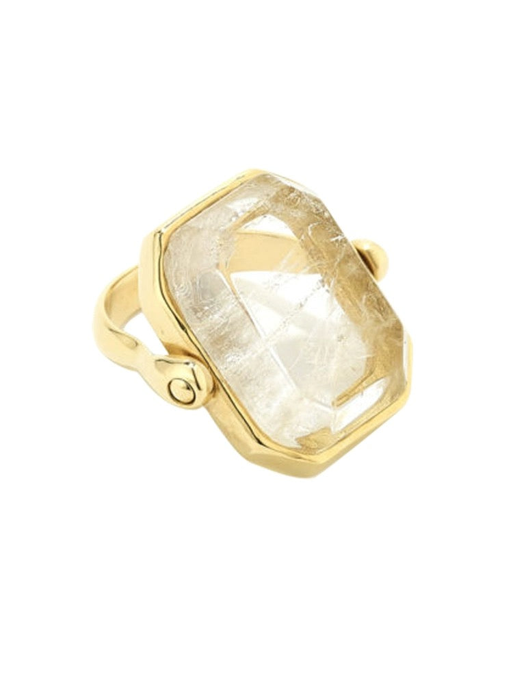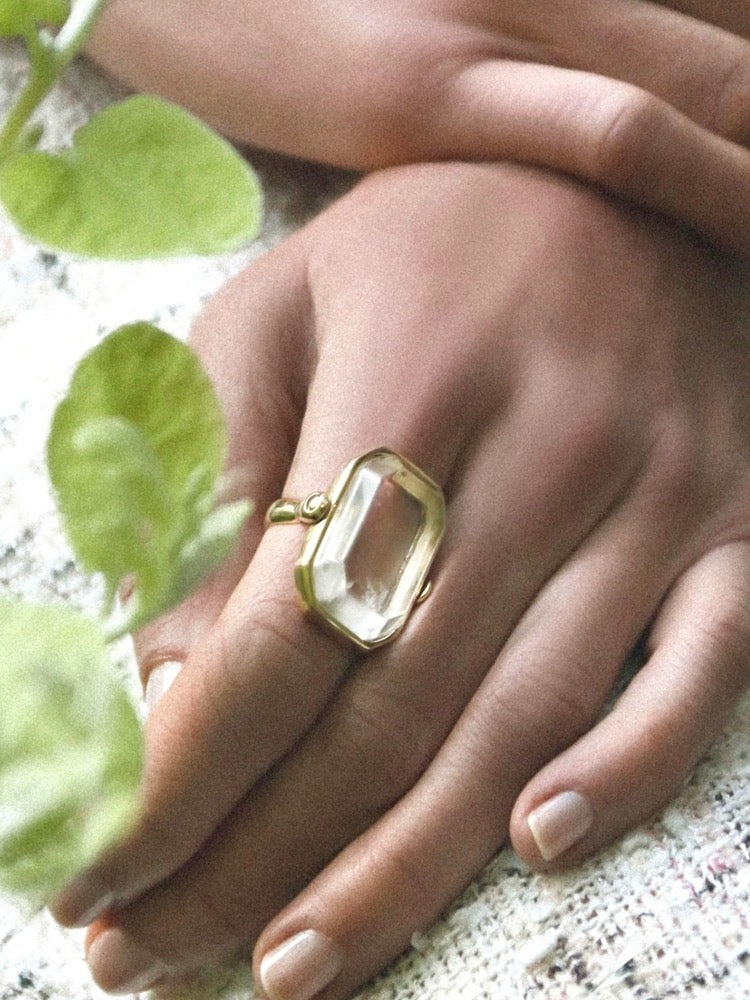 Modern Gold Emerald-cut Rock Crystal Statement Ring Boho-chic | Tsukuba Jewelry