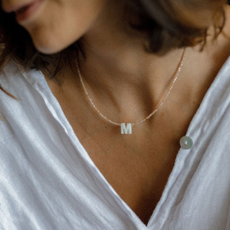 Embrace romance and personal expression with our Love Letter Necklace, a delicate tribute to affection and charm. This enchanting piece features a dainty chain adorned with natural shell beads, each one carrying the warmth of the ocean's embrace. Nestled among these soft hues are sparkling pink crystals, offering a gentle contrast with their subtle blush tones. The centerpiece, a single love letter charm, crafted from a natural shell, hangs with an inviting allure, inviting you to inscribe your own story of love.