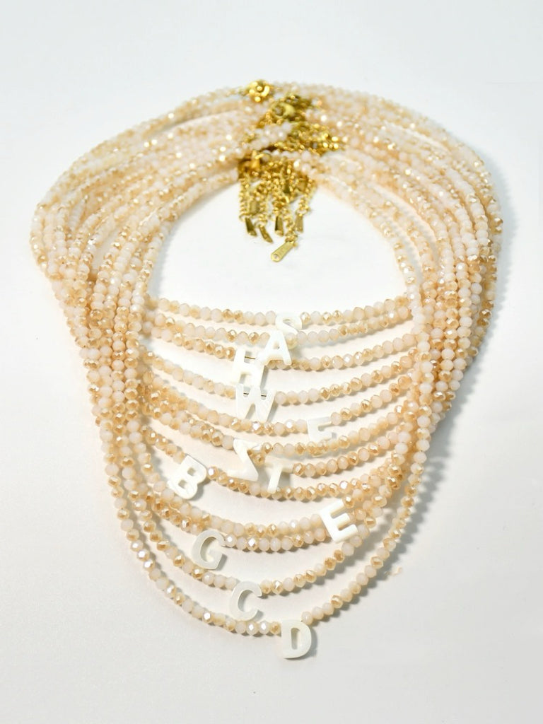 Personalized Love Letter Charm Necklace with Pink Crystal and Natural Shell | Tsukuba Jewelry