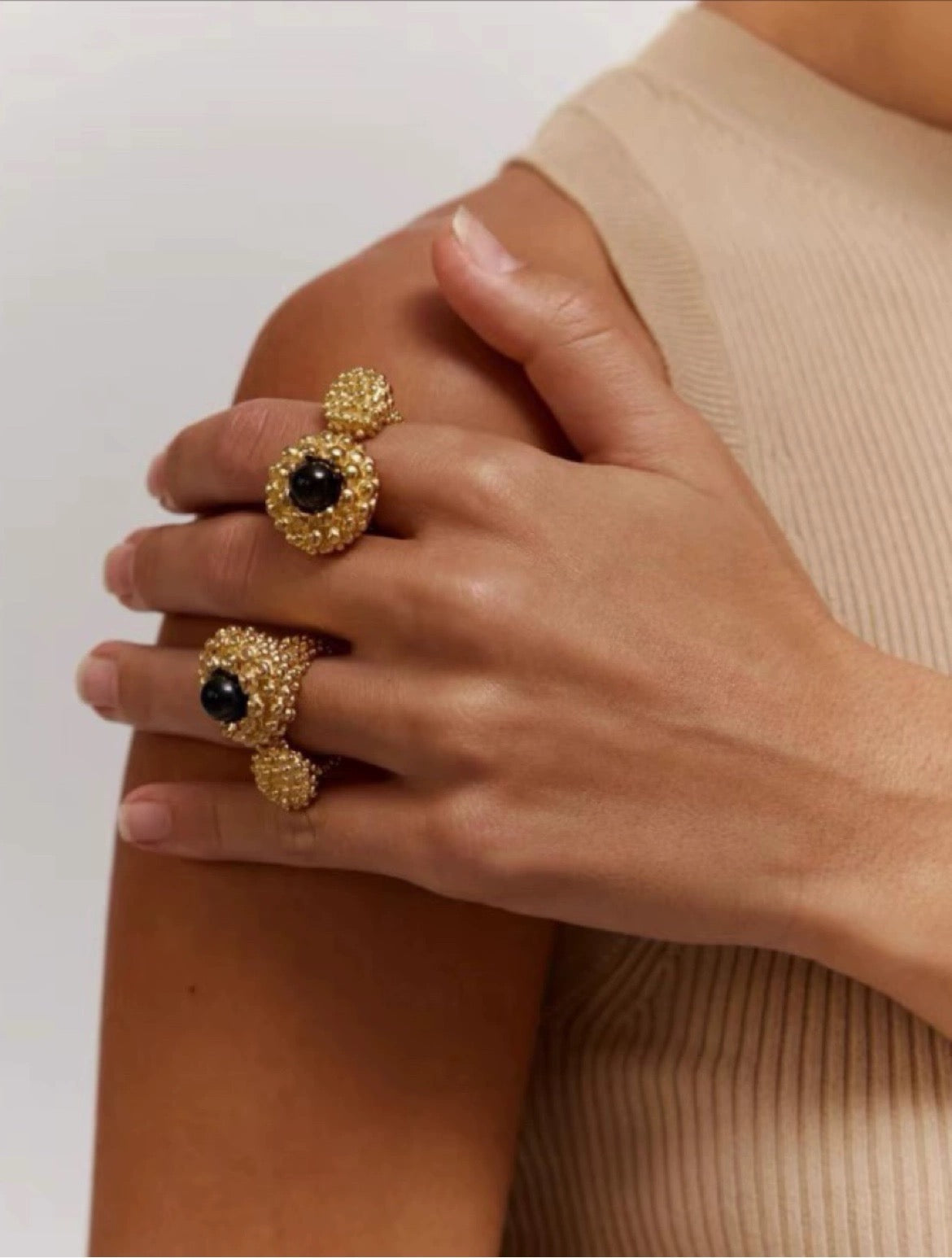 *Note: The naturally sourced black onyx bead may vary slightly in size and color, enhancing the uniqueness of each ring.